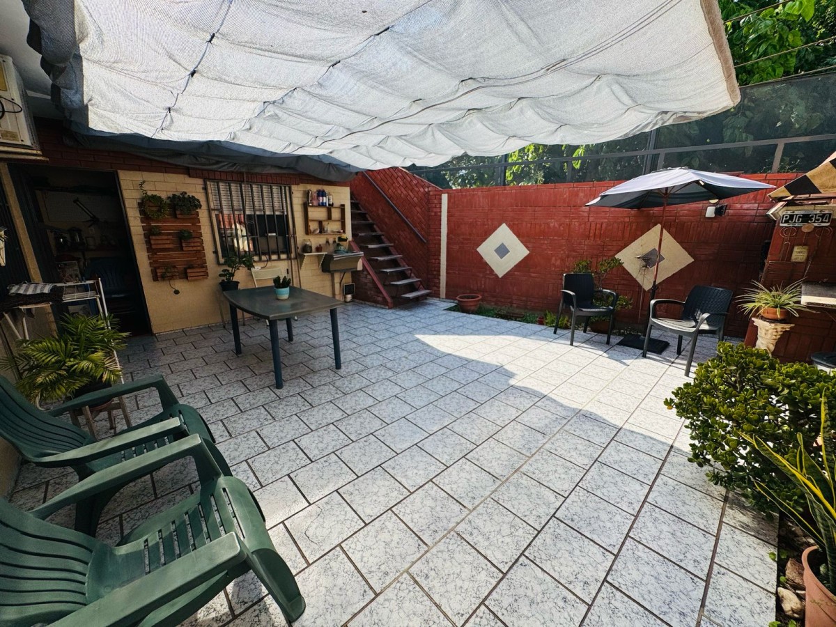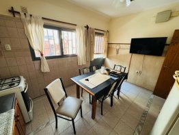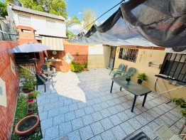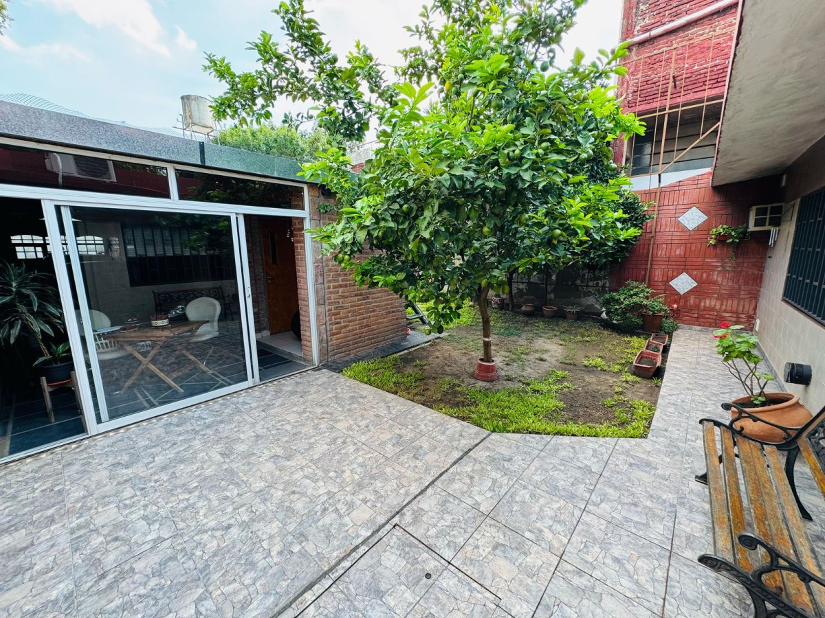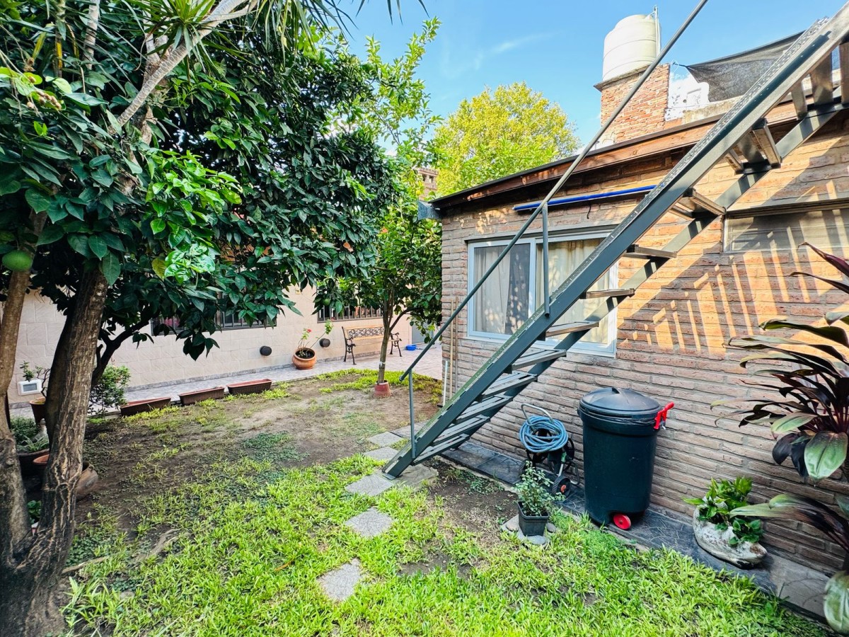 Al contrafrente se encuentra la casa principal con dos dormitorios, a la cual se accede por un patio con jardín. Cocina comedor completa, indepentiente del living; dormitorios con placares. Baño completo. Amplio garage con lugar de guardado y baño.