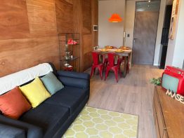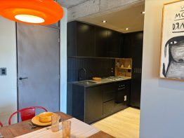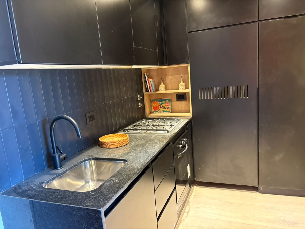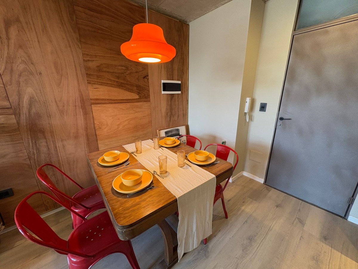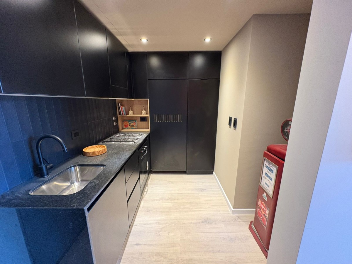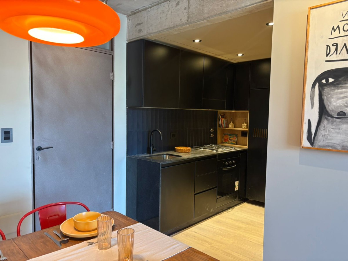 Ingreso a estar comedor con cocina integrada, completamente amoblada con bajomesadas y alacenas de diseño; living con salida a balcón. Un dormitorio con frente de placar y baño completo.