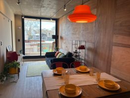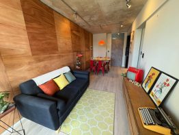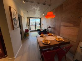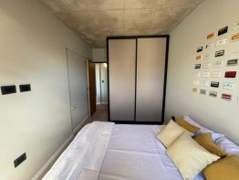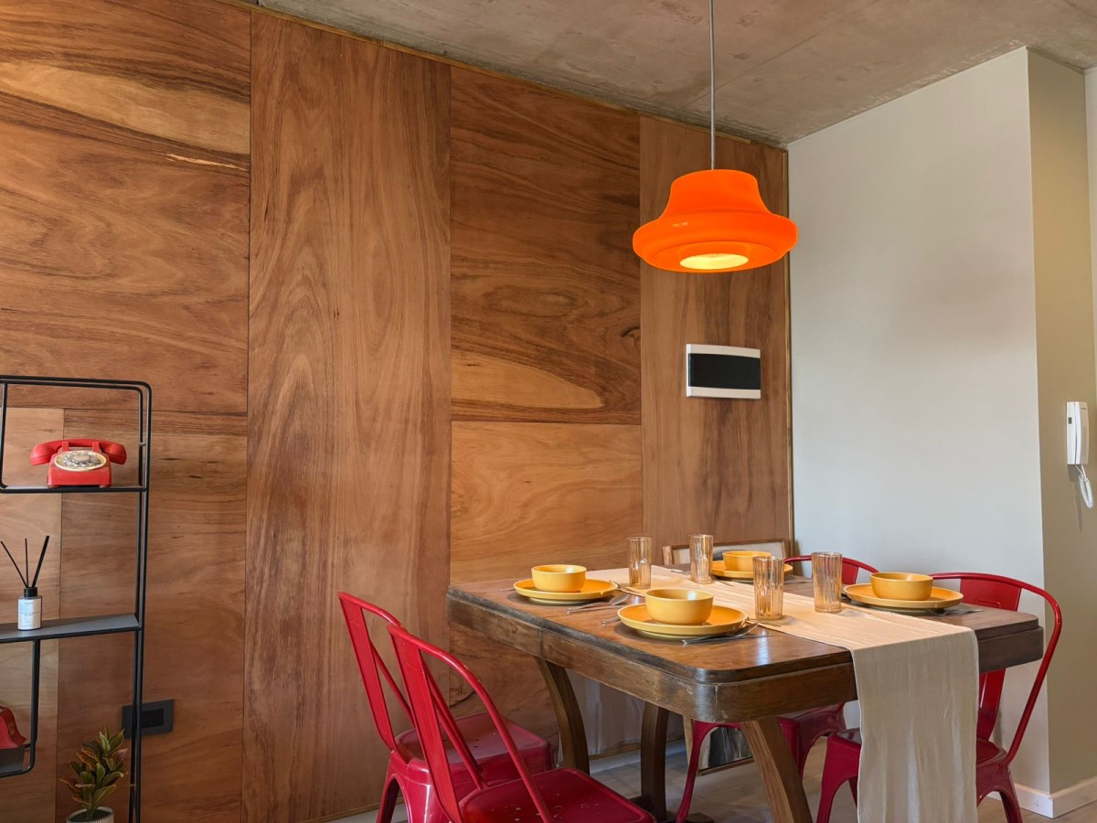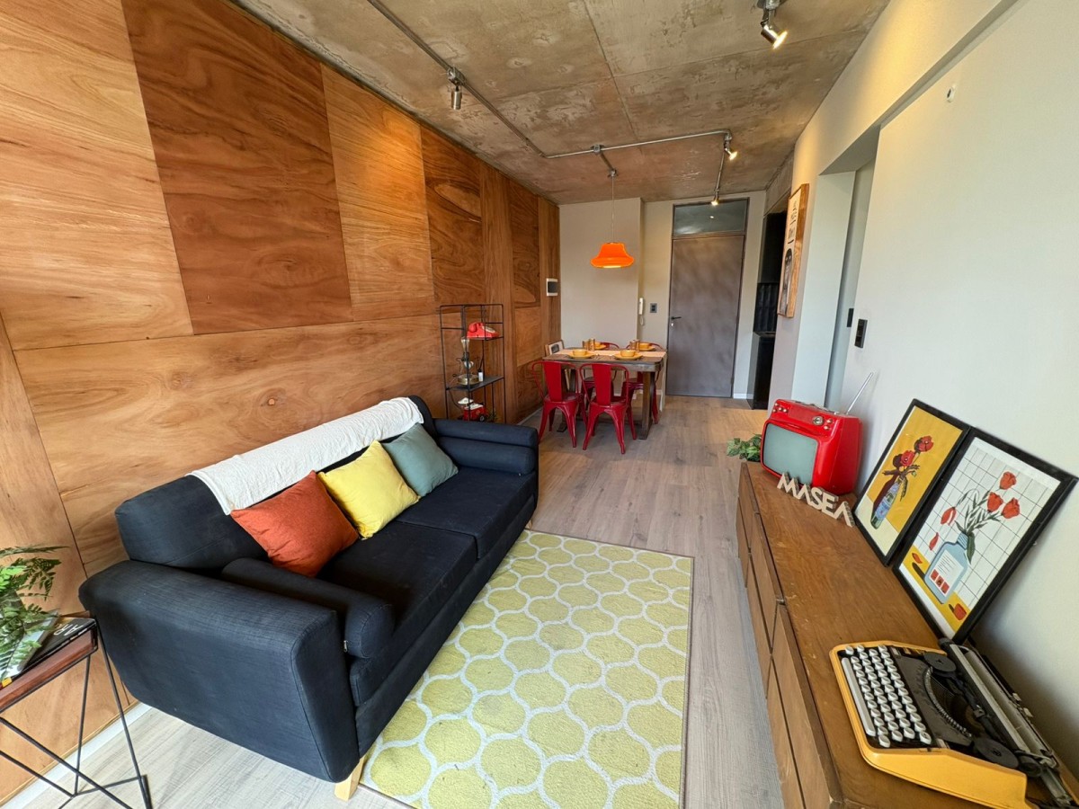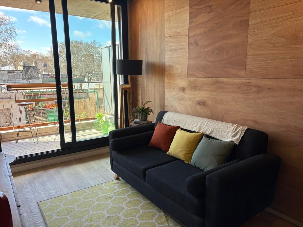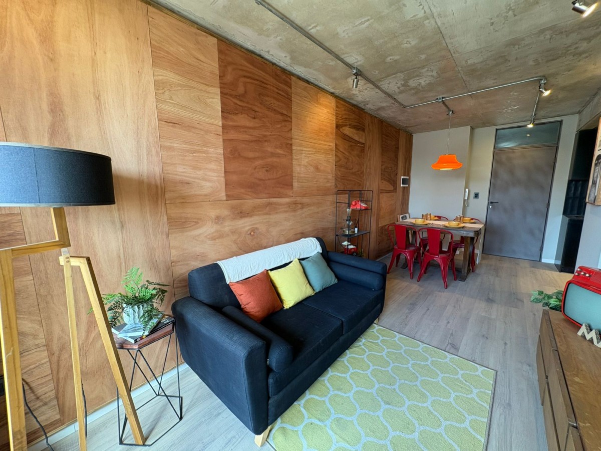 Ingreso a estar comedor con cocina integrada, completamente amoblada con bajomesadas y alacenas de diseño; living con salida a balcón. Un dormitorio con frente de placar y baño completo.