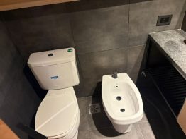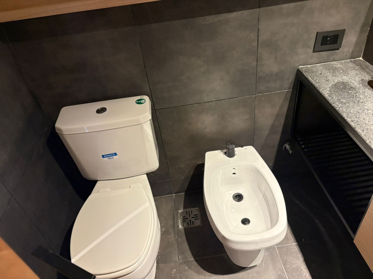 Pisos flotantes de madera en combinación con porcelanato, aberturas de aluminio negras con DVH, preinstalación para A/A, calefacción a través de caldera (no incluye radiadores), instalación eléctrica con estilo industrial.