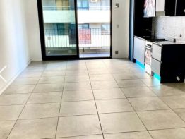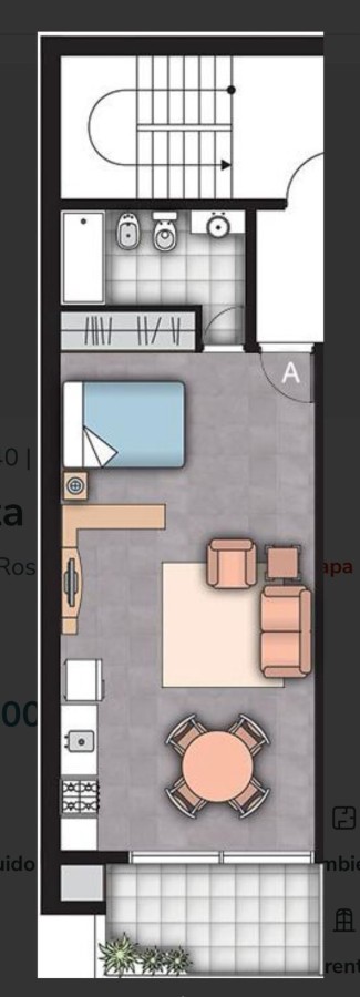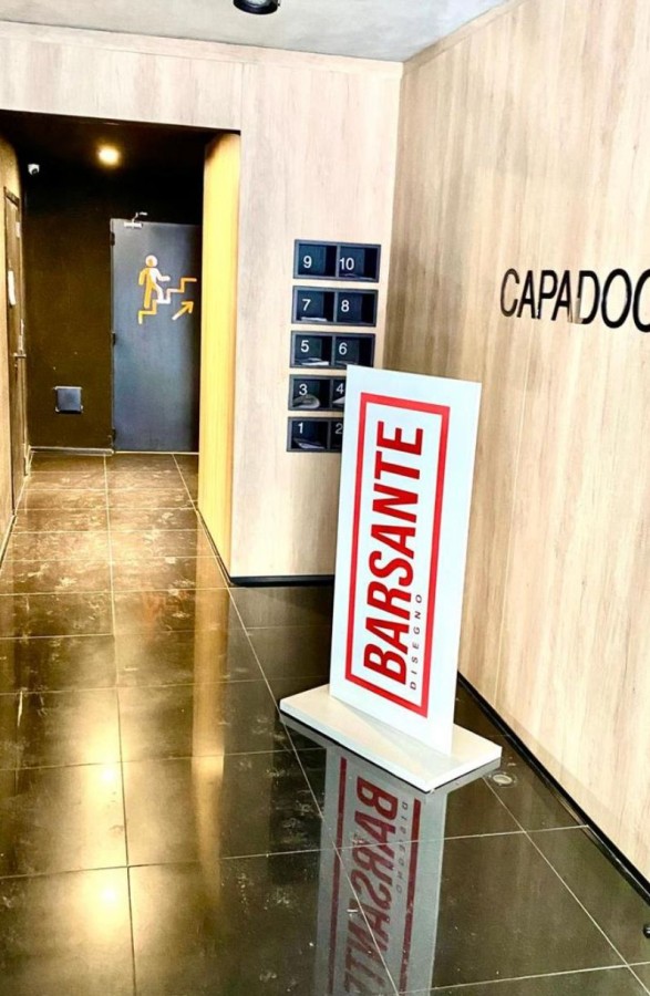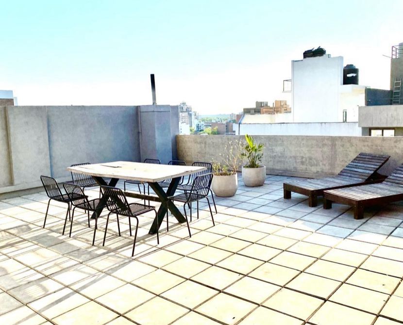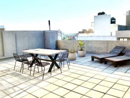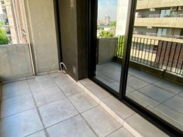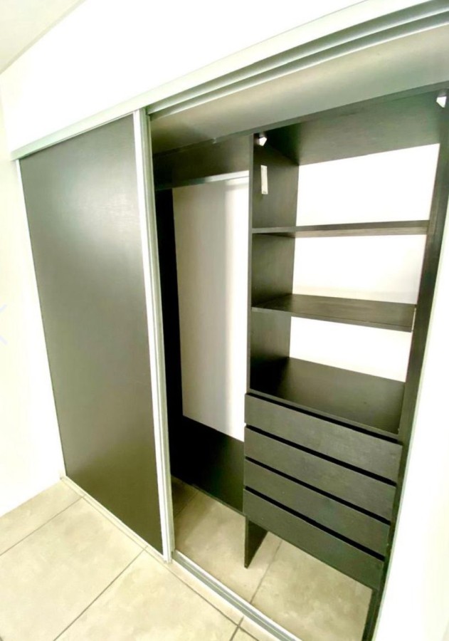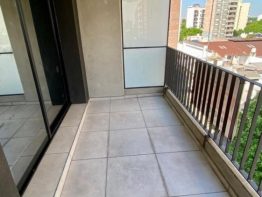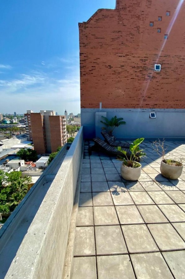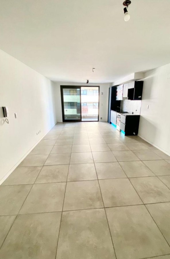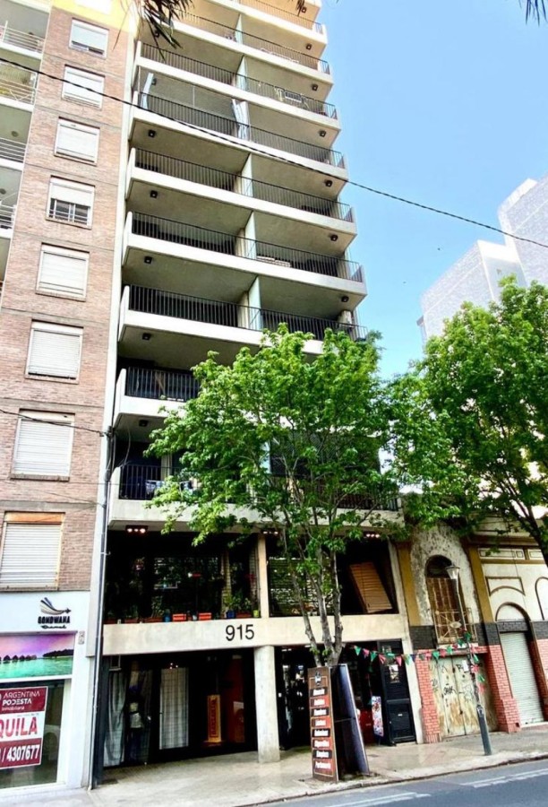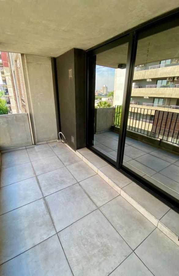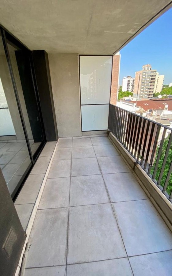 Monoambiente de 46 m2, al frente con balcón, ubicado en piso 6. Consta de ingreso a ambiente único, luminoso;  amoblamiento de cocina de calidad con alacenas y bajo mesada. Baño completo, placar con interiores. Preinstalación de A/A.