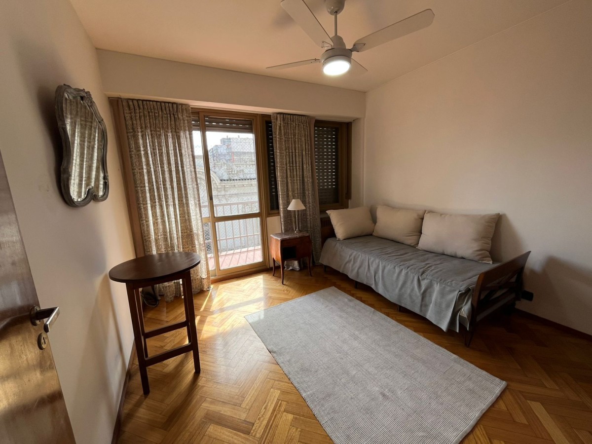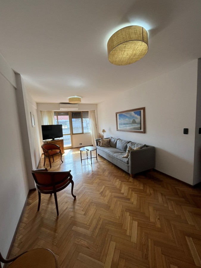 Semipiso con doble ingreso. Living comedor con pisos de parqué, salida a balcón corrido al frente norte.