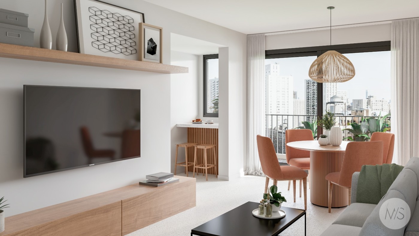 Desarrollado en 4 pisos, con dos unidades de un dormitorio y una de dos dormitorios por piso. Cuenta con amenities en terraza de uso común, solarium y parrillero, ubicados en la azotea. Opción de adquirir terrazas exclusivas.