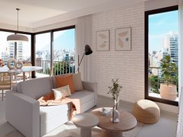 Edificio estratégicamente ubicado en zona centro, emplazado sobre esquina. Planta baja con ingreso peatonal, local comercial y cocheras. Desarrollado en 8 pisos con unidades semipisos de uno y dos dormitorios. Cuenta con amenities en terraza de uso común, solarium y parrillero, ubicados en la azotea. Opción de adquirir terrazas exclusivas. Las unidades poseen balcones aterrazados orientados al frente. Terminaciones de primera calidad. Aberturas de aluminio y ascensor revestido en acero y espejo.