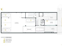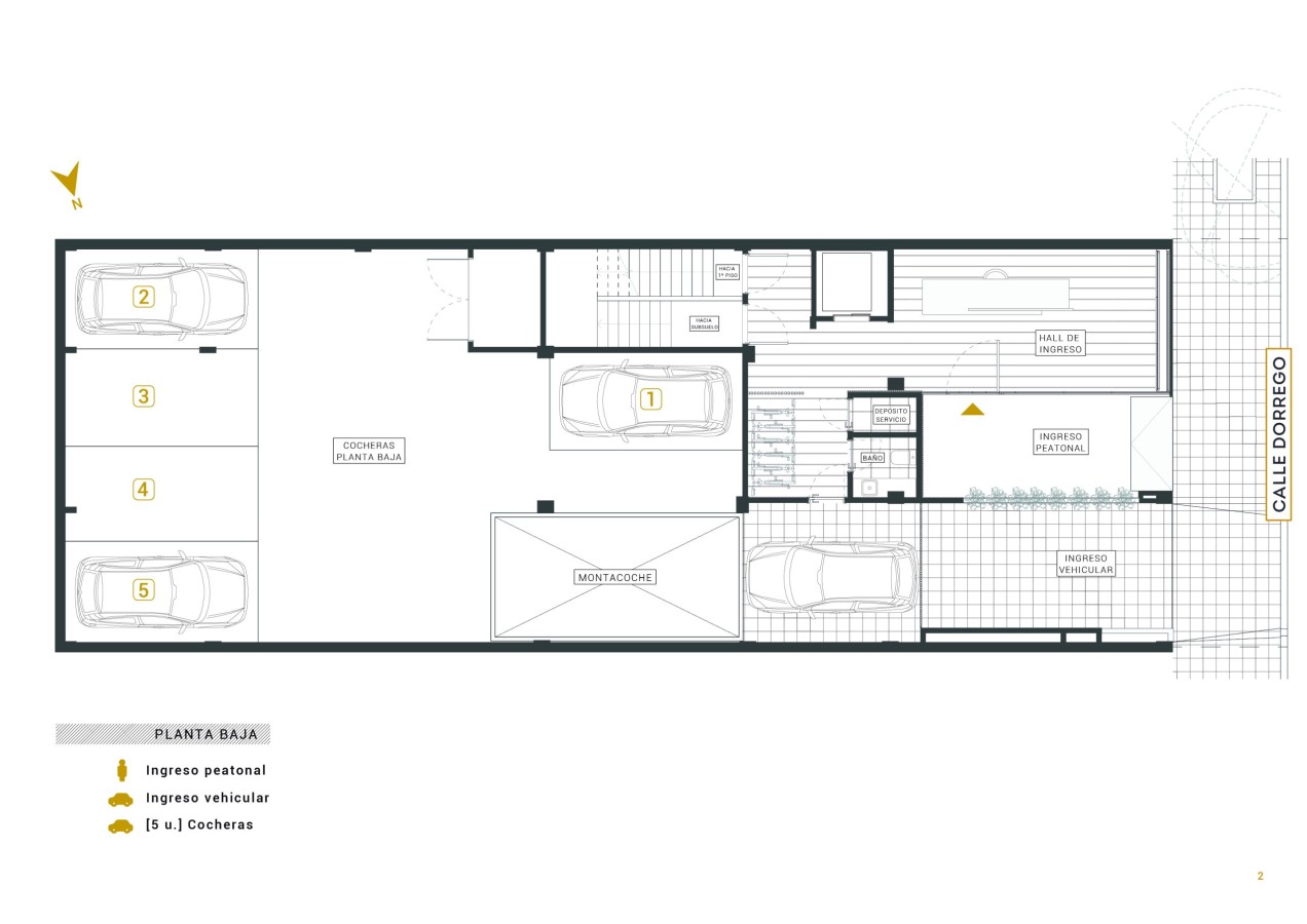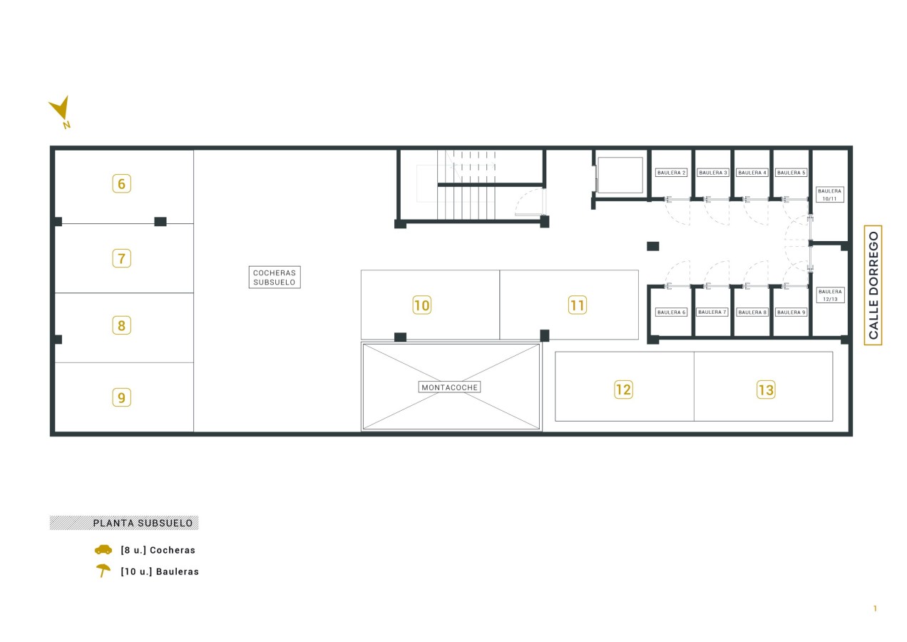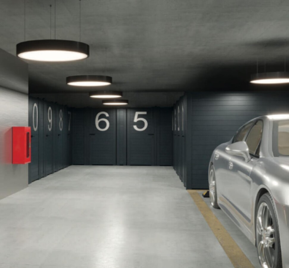 El proyecto se compone de un nivel de subsuelo, planta baja, 8 niveles de viviendas y un nivel de terrazas. En los dos primeros niveles se distribuyen cocheras simples y dobles con sus correspondientes bauleras individuales.