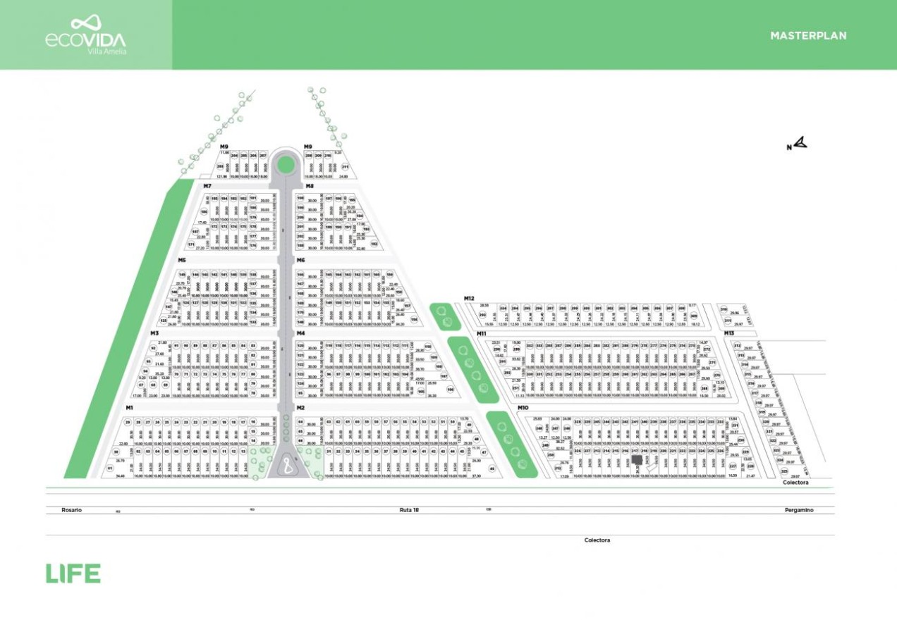 Barrio abierto residencial, localizado en Villa Amelia, ubicado a 20 min. de Rosario. El proyecto se expande en 17 Has. que cuentan con 334 lotes que van desde los 300m2.