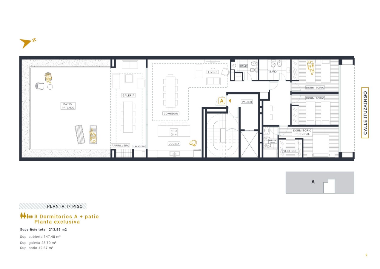 Departamento de 213.85 M2. Con galería y patio exclusivo.