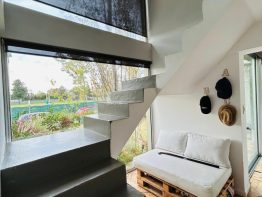 Pisos de pinotea, radiadores instalados en todos los ambientes con calefacción central; hogar con cerramiento de vidrio templado.