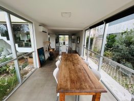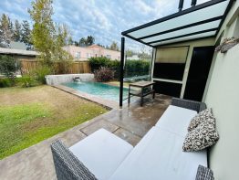 P.B: consta de ingreso a living comedor; cocina con isla,comedor, baño completo con ante baño. Lavadero independiente, parrilla techada. Piscina.