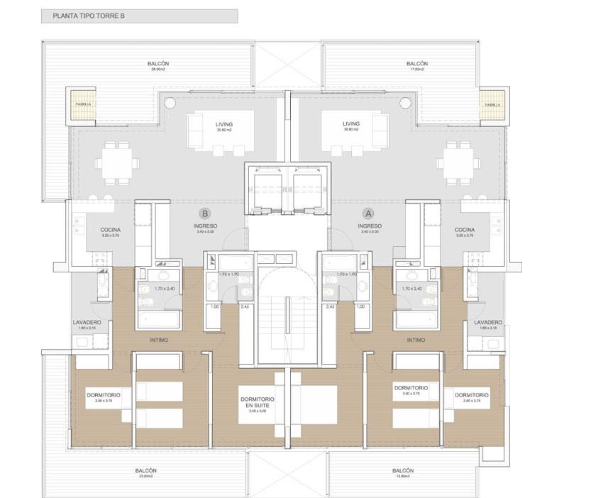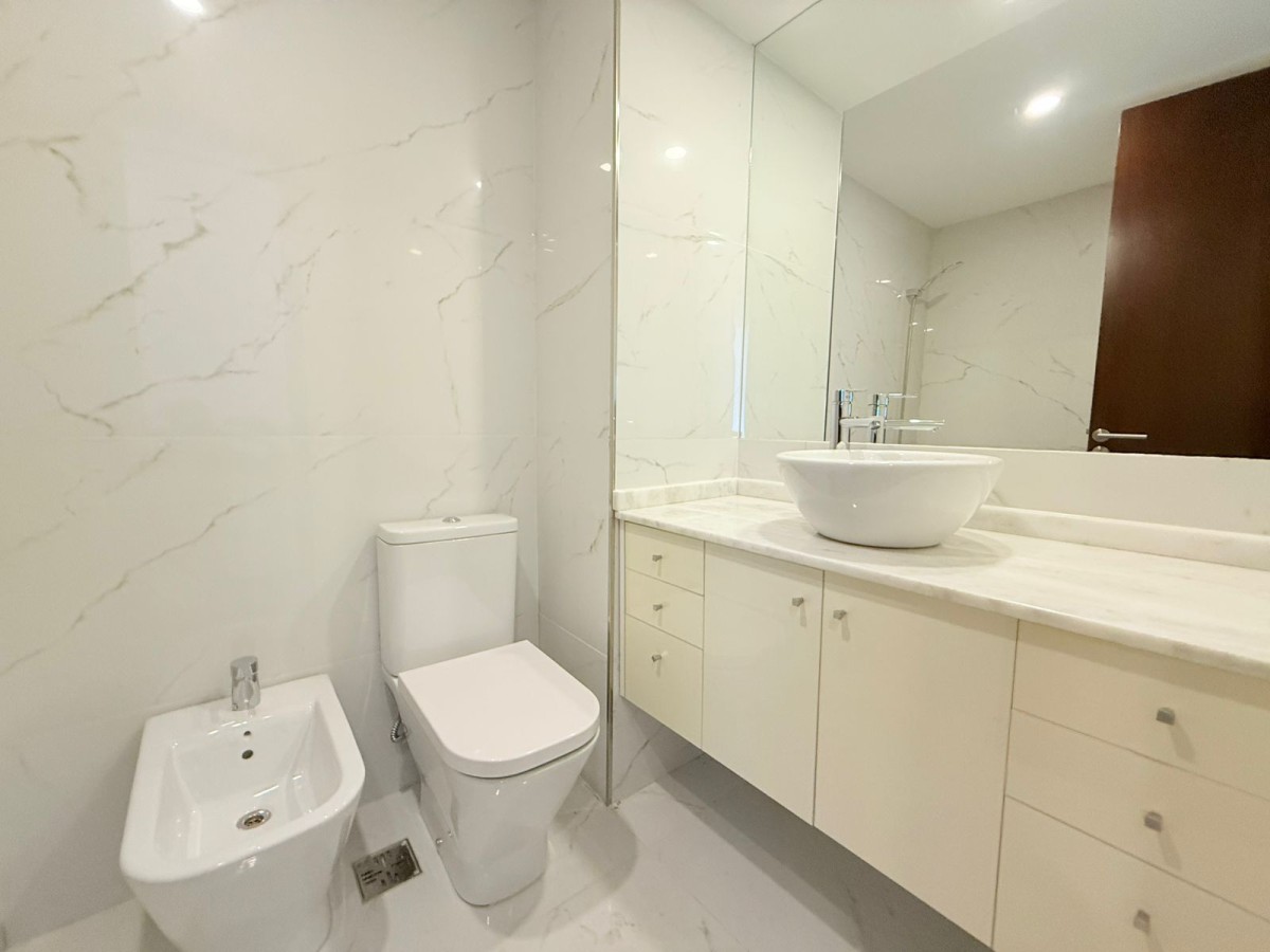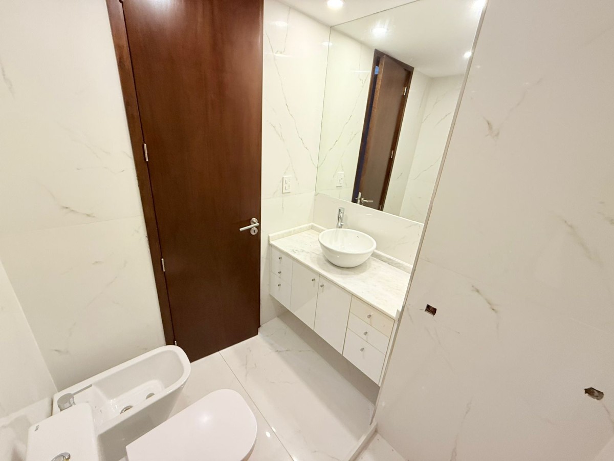 Cocina comedor con horno empotrado y anafes vitroceramicos; lavadero independiente, 2 baños completos, uno de ellos en suite y el otro con hidromasajes. En íntimo dormitorios con salida a amplio balcón al contrafrente, todos con interiores de placard.