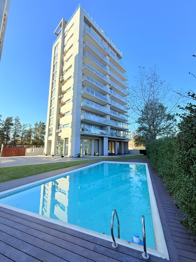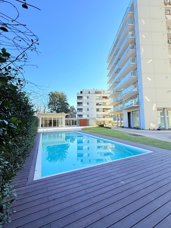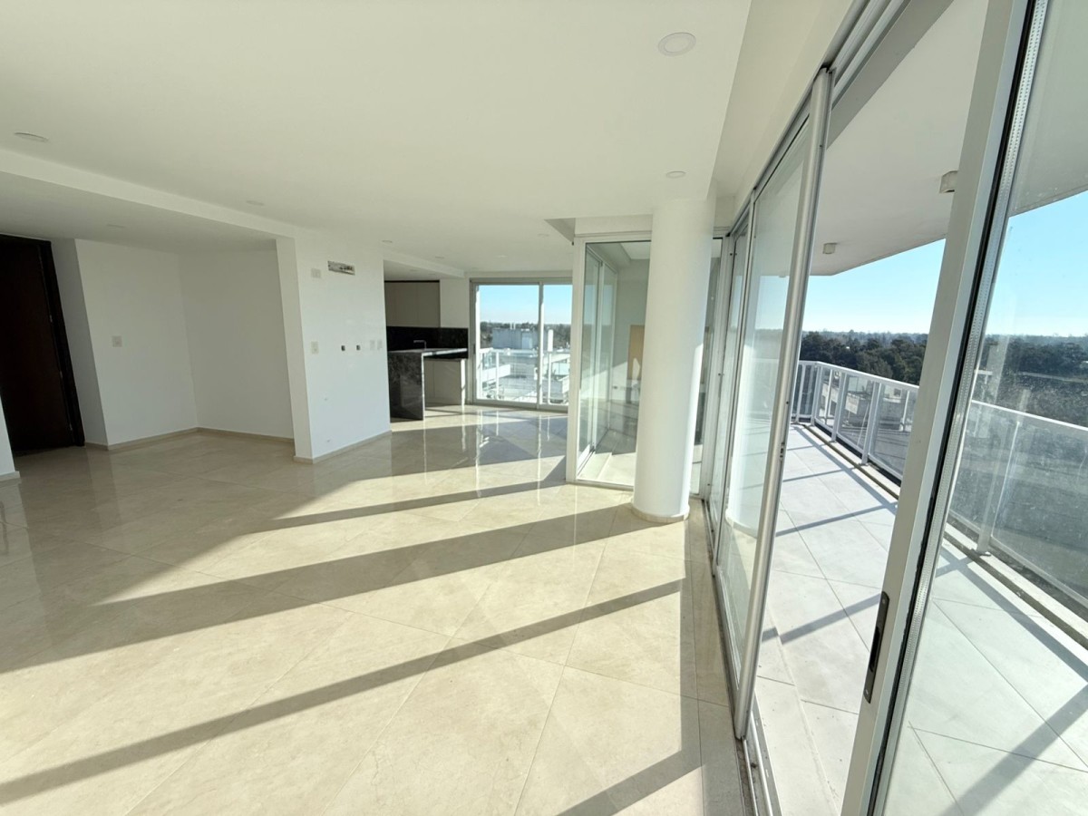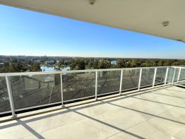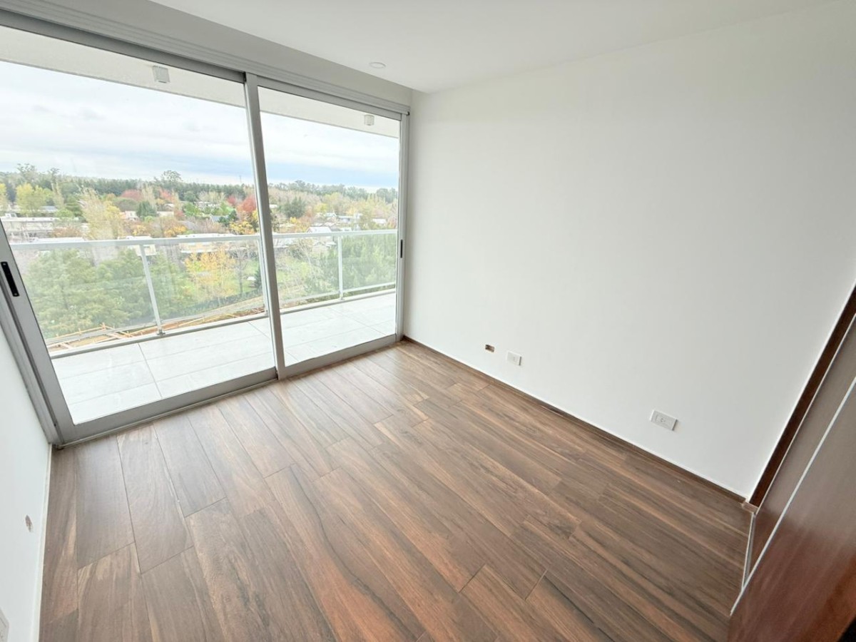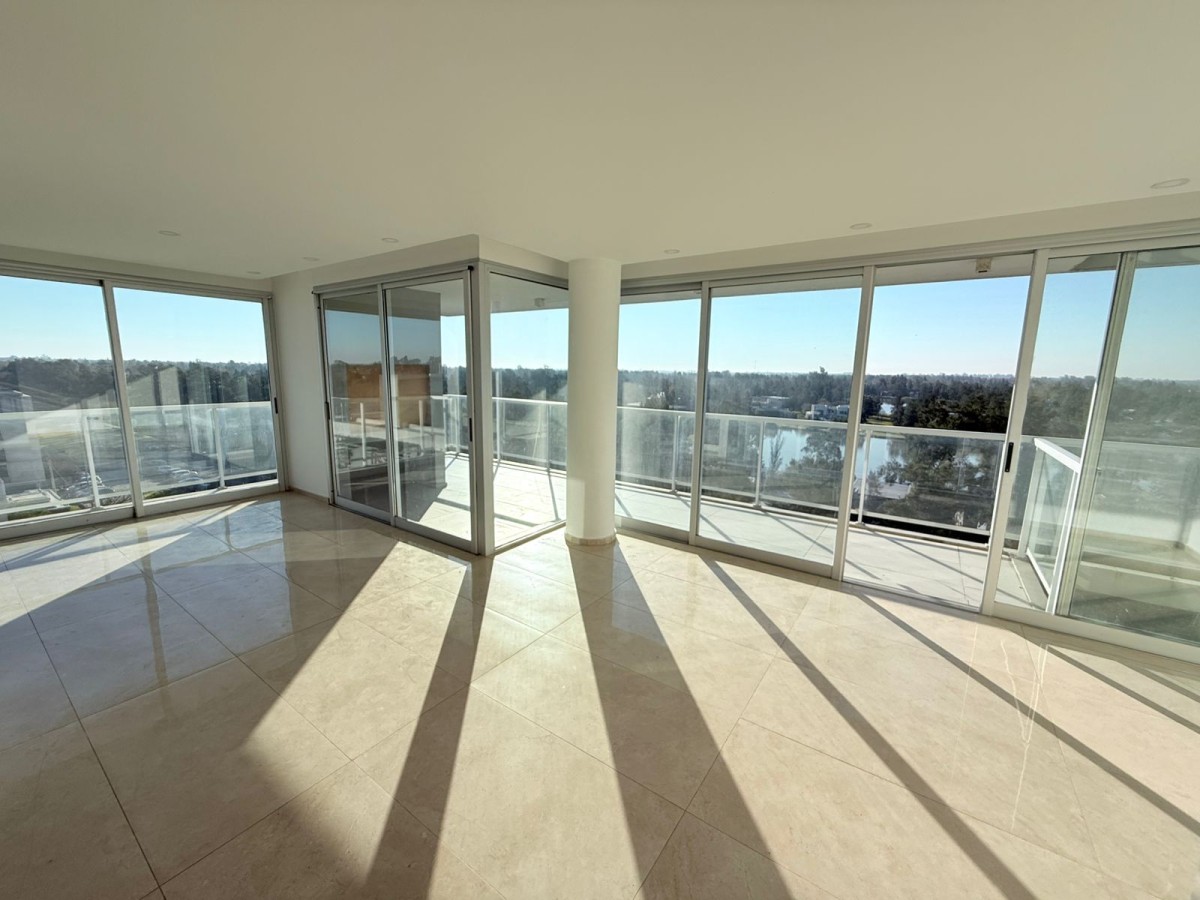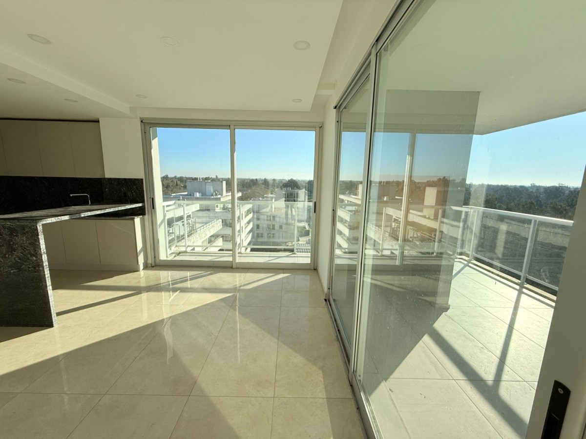Semipiso con vista panoramica al country del lago y al barrio de Aldea Fisherton con balcón aterrazado con parrillero individual.