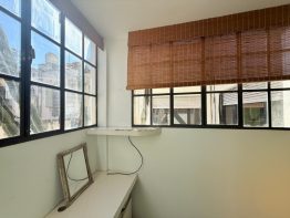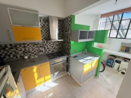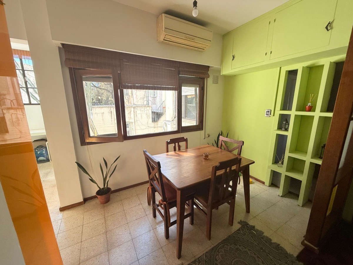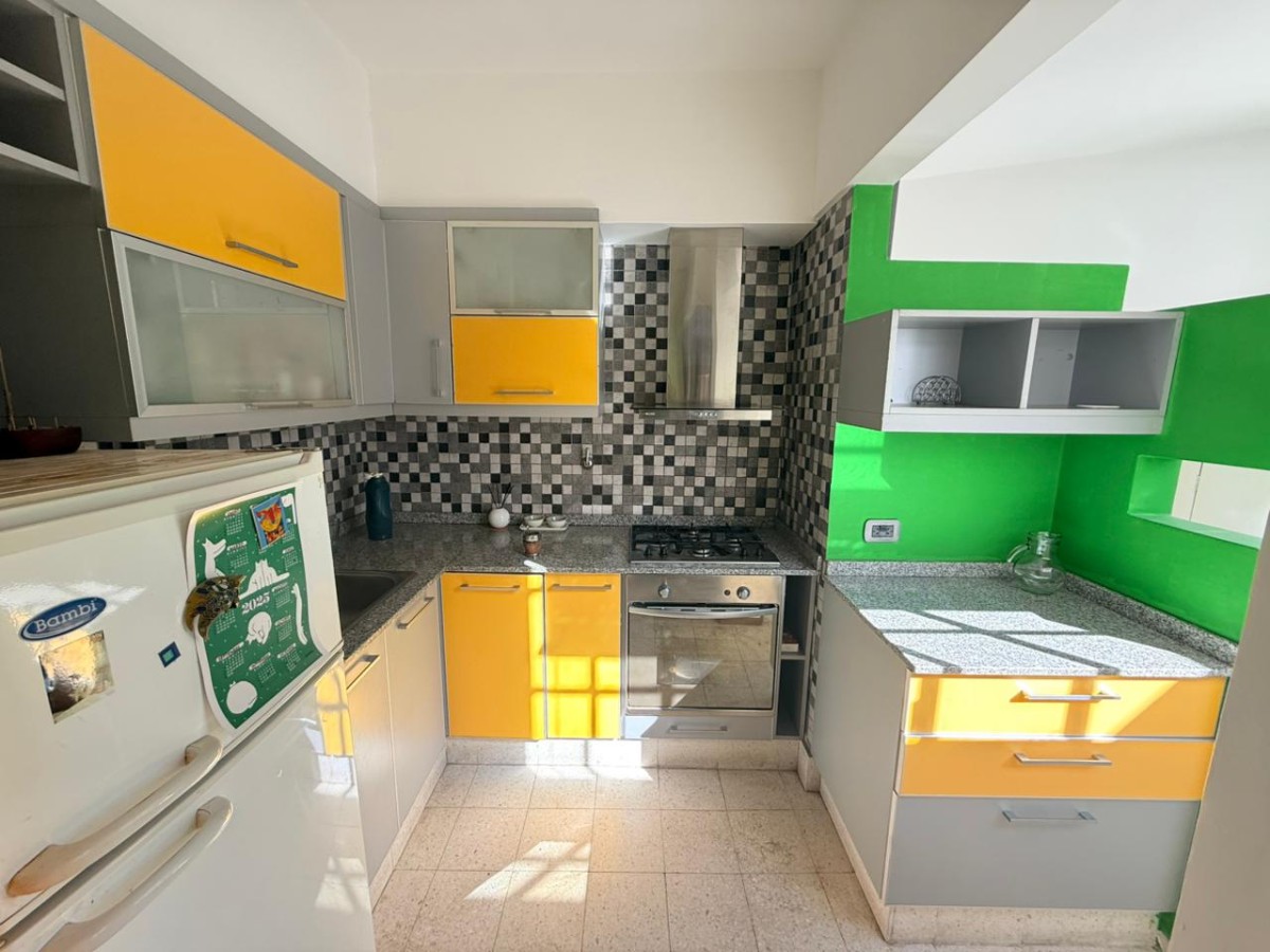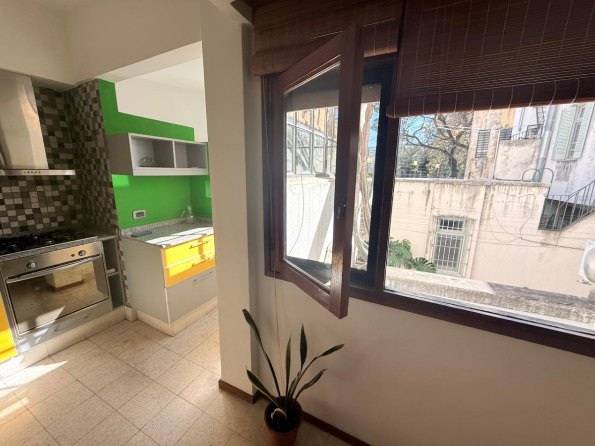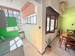 Cocina semi incorporada reciclada 100% con artefactos en acero inoxidable. Dos dormitorios con piso de parquet y placard con interiores. Baño completo con bañera y mampara.
