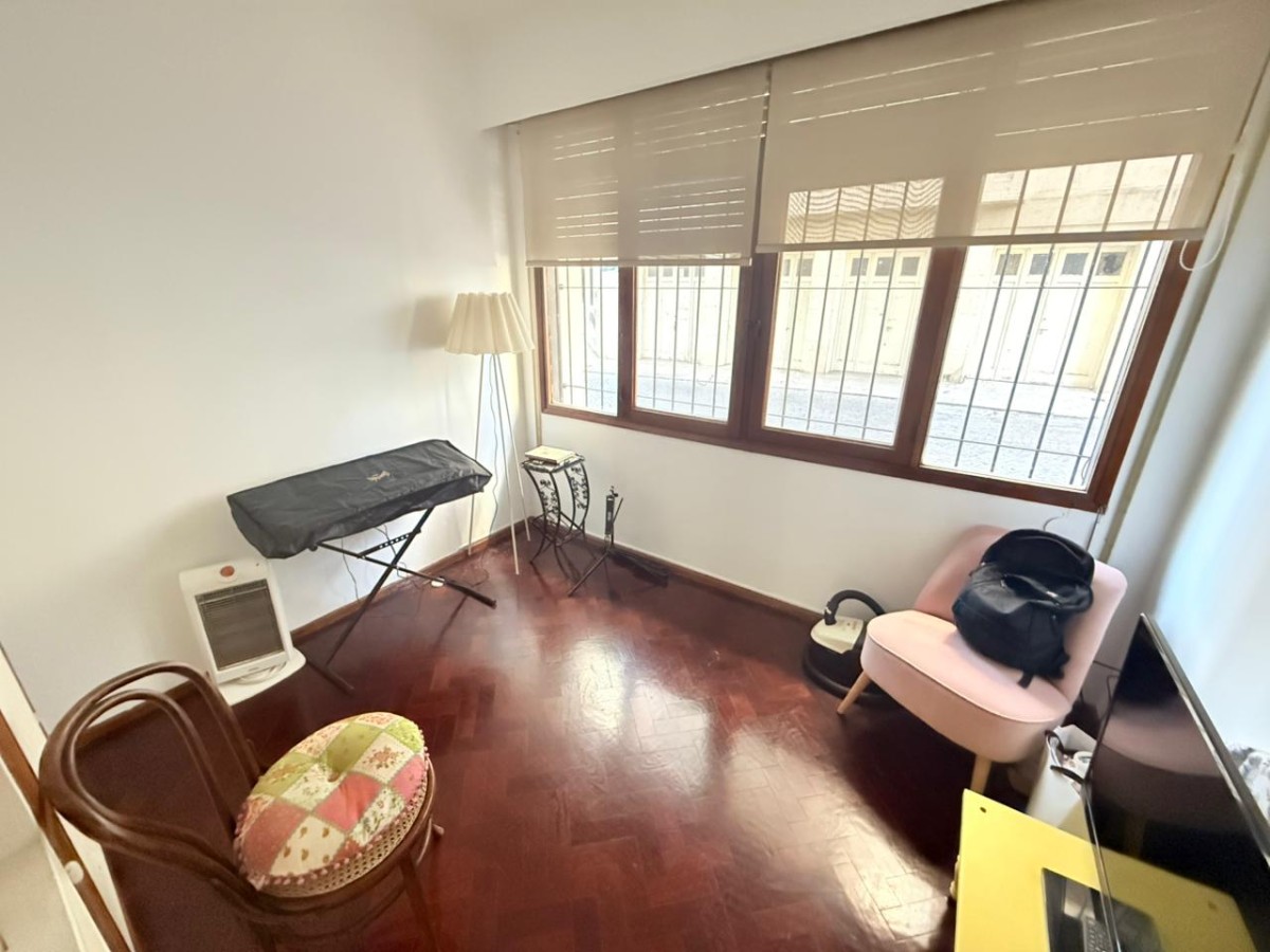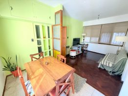 Departameno en PB. Ingreso a living comedor con pisos de parquet, ventilación cruzada.