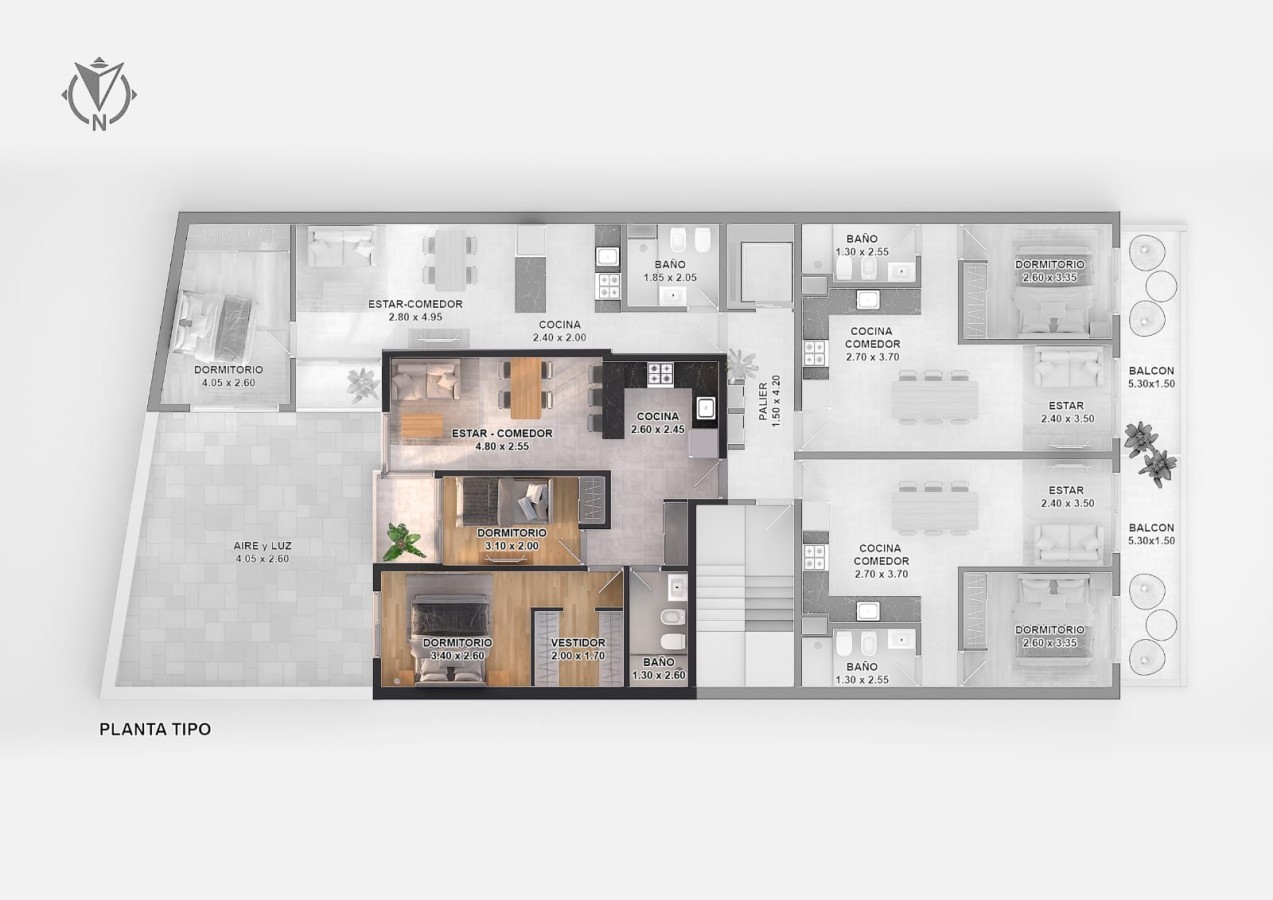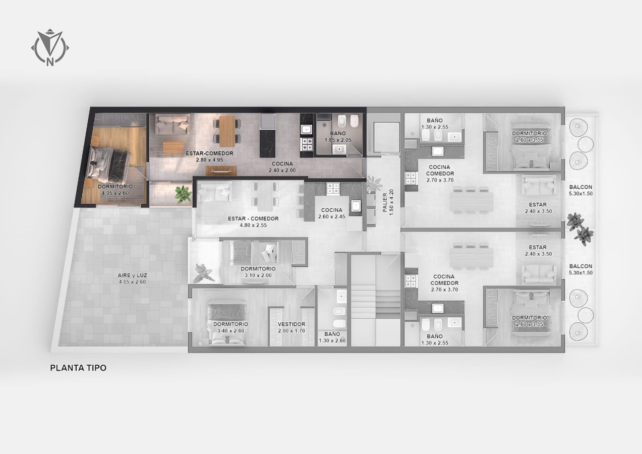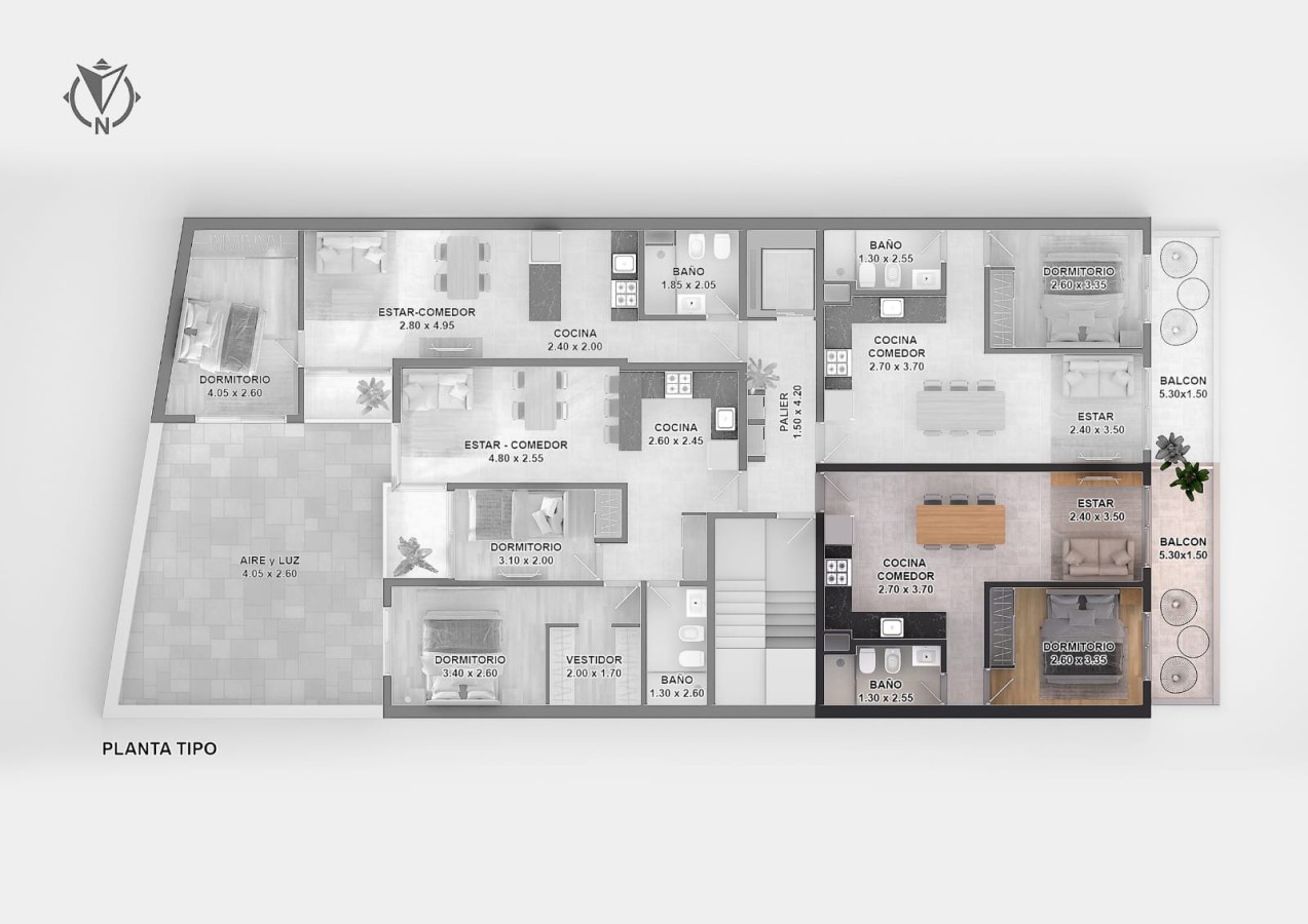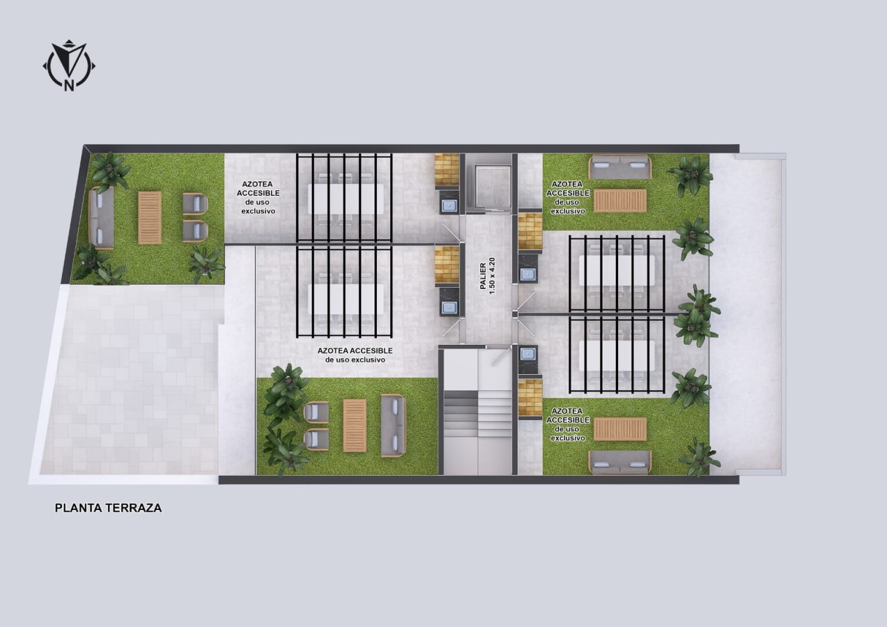 Cada unidad del cuarto piso cuenta con terraza de uso exclusivo, equipada con parrilleros individuales.